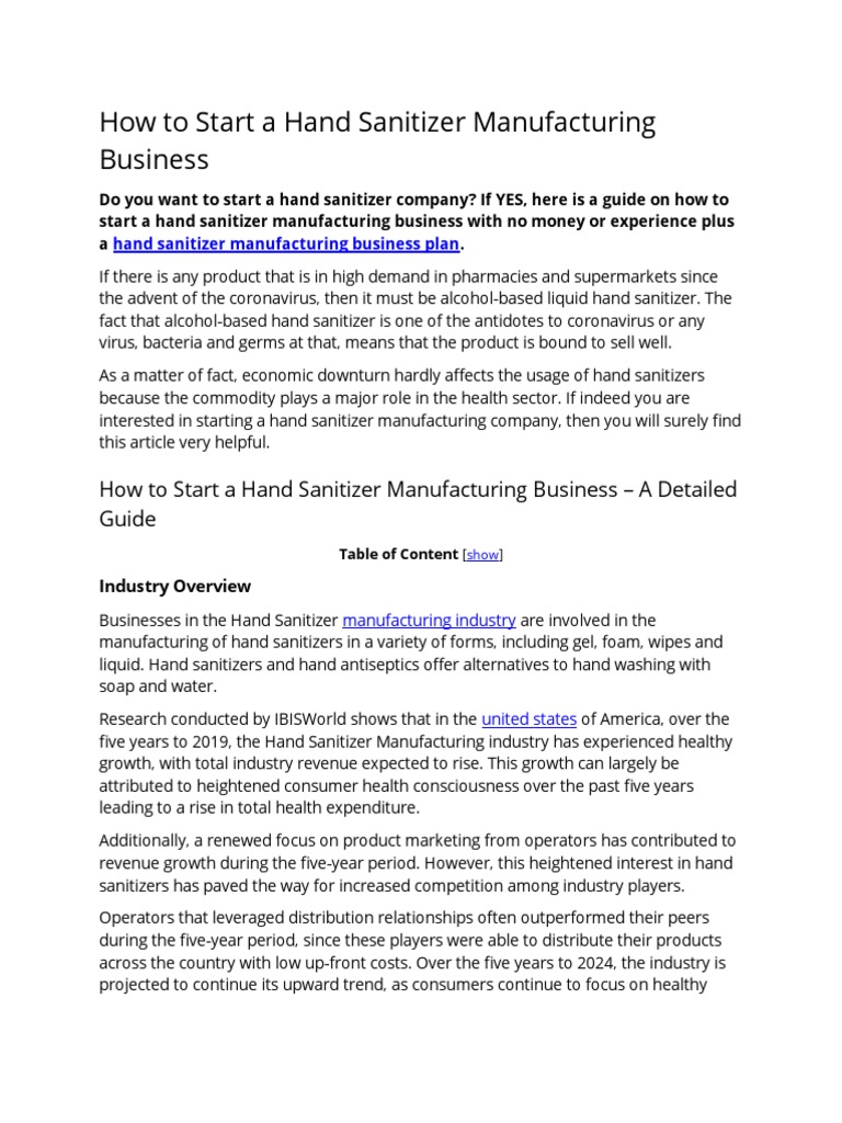 Hand sanitizer business plan is very much needed at this hour of the pandemic. Sir i want start small scale company in dhule district maharashtra but i confusion in small scale which one is better sterile or tablet capsule production and how many are total cost of product. The global hand sanitizer market size was valued at usd 1.64 billion in 2019 and is expected to reach usd 11.40 billion by 2021, representing a growth of 595%. The hand sanitizer is labeled properly. Others, like hovione, jumped in during a time of need. Hand sanitizers and hand antiseptics offer alternatives to hand washing with soap and water. Ocean star inc, as no.1 hand sanitizer manufacturer in china, is responsible for helping everyone with our professional knowledge. Launching your first business can be a daunting task. Starting a small scale business in making hand sanitizers is easy and can be started from your home itself. Medical consulting firm in china. However, the demand will be there afterward too. Covid 19 which critical choices should businesses make next ey global / your business plan is the foundation of your business. Sohu business reported that people preferred to use soap to wash hands instead of hand sanitizer before sars.